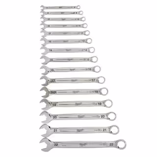 Acest set de 15 chei combinate metrice Milwaukee este proiectat pentru a oferi performanță și durabilitate de top pentru mecanici și profesioniști. Geometria MAX BITE™ a capătului deschis reduce riscul de rotunjire a șuruburilor, în timp ce mecanismul cu clichet de 144 de dinți asigură o operare rapidă și eficientă în cele mai înguste spații. Livrat într-o tavă de depozitare, acest set este soluția completă pentru orice atelier.